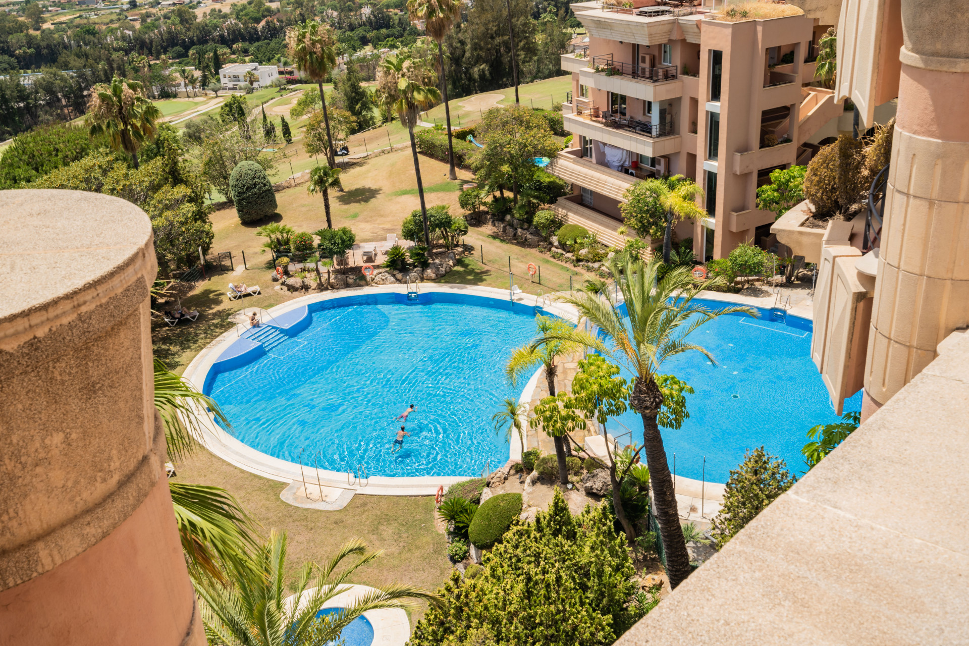 It is settled in a high security complex with 24 hour guard, lovely gardens and several pool areas. One of the landmarks of Marbell