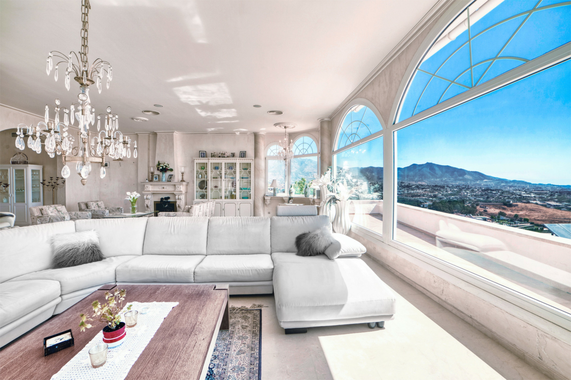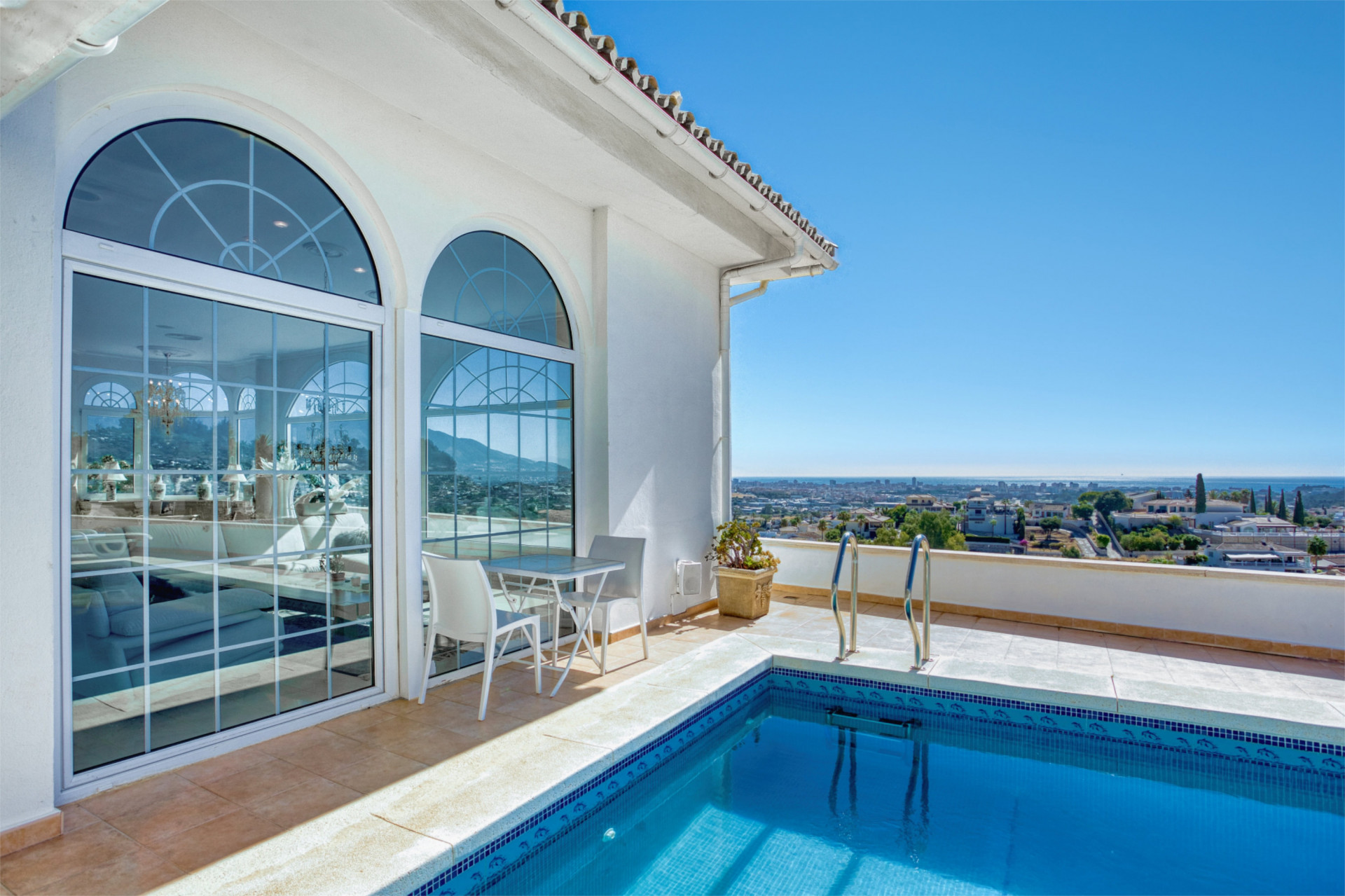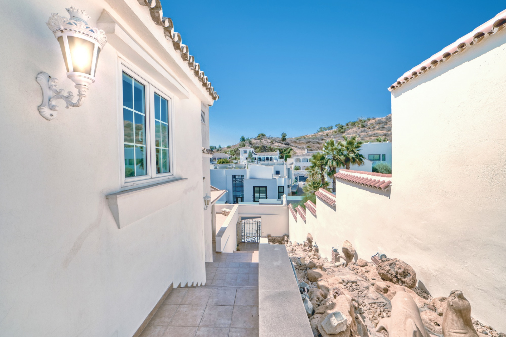 The property is located at one of the most elevated plots in the area with a magical 360 view and sun all day. The plot has various terraces in different levels and in different directions. You can choose to have sun or shade as you like. All in all, there is more than 360m2 of terraces. This is very appreciated here in Spain where we have more that 340 days of sun a year.